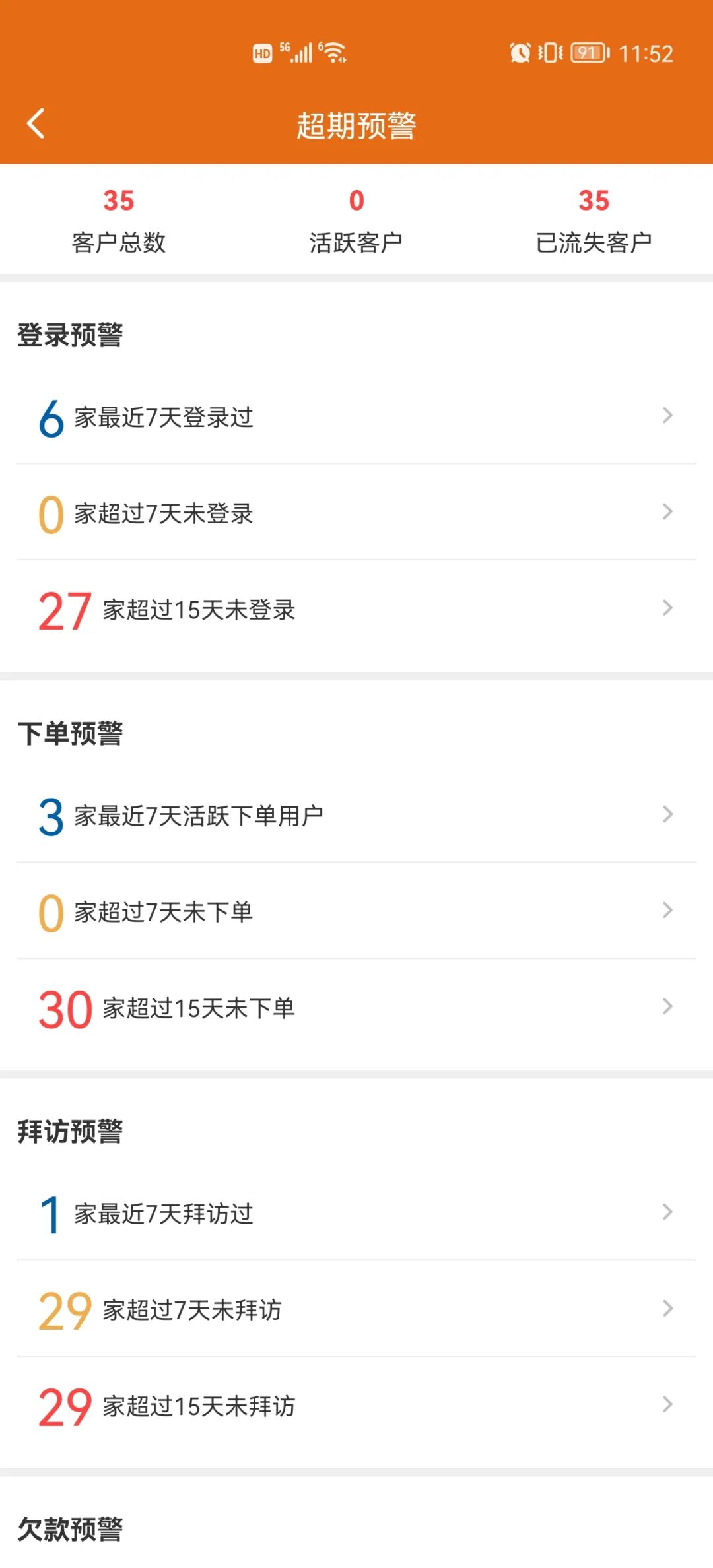 傳統老板,經營多年,已經積累了不少客戶,但要清楚掌握客戶情況,比如手上總共有多少客戶,有多少活躍客戶,客戶有多少天沒登錄, 多少天沒下單,有多少欠款,靠傳統的方式很難區分出來,但通過快馬超期預警能夠很清楚掌握客戶情況。